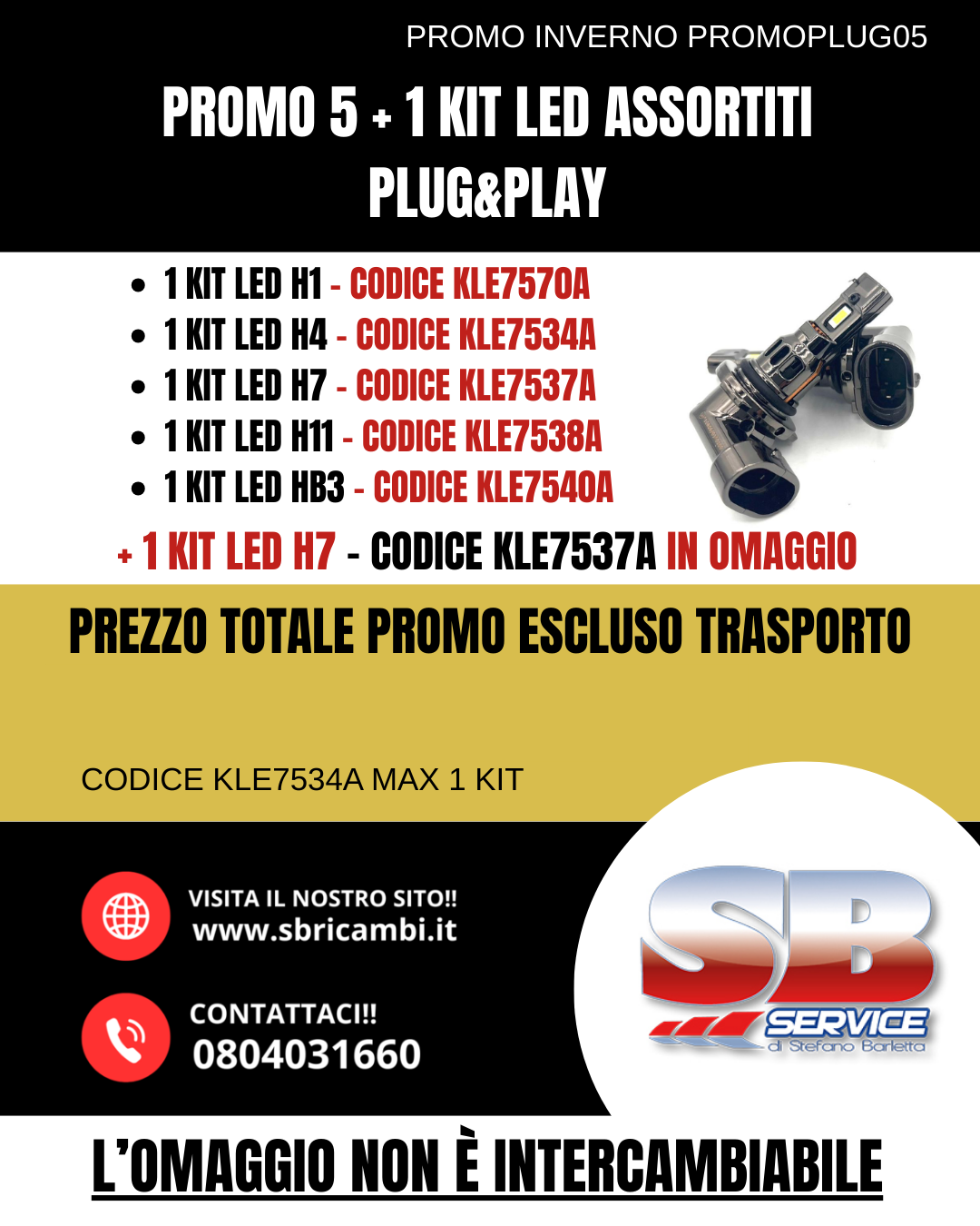 RICEVERAI IN OMAGGIO 1 KIT LED H7 - CODICE: KLE7537A