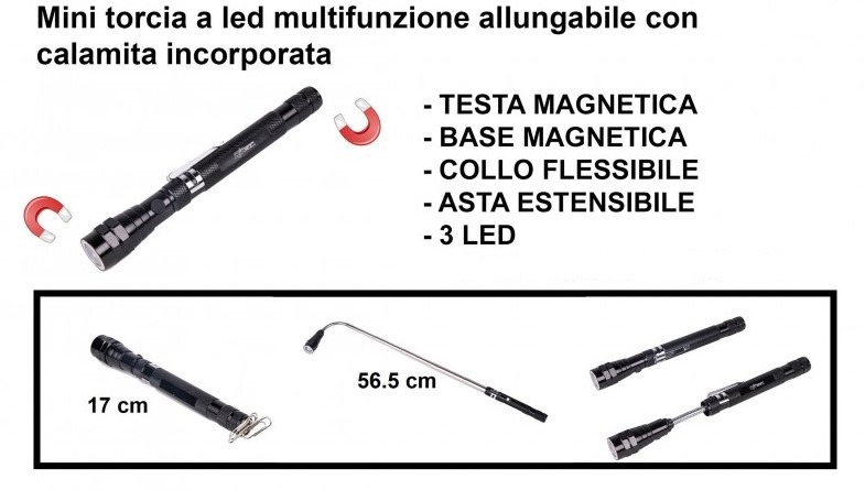 TORCIA LED MULTIFUNZIONE ALLUNGABILE CON CALAMITA